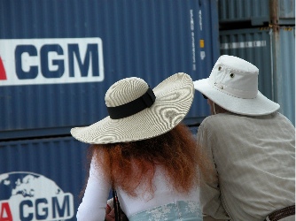 Marathon Man: I see this man every day on deck. It doesn't matter what time of day you go out, there he is, striding around the promenade deck in nothing but his jogging shorts and tennis shoes with a stop watch around his neck. And if he's not jogging, he is lying on the deck doing crunches with his legs in the air. This is not any spring chicken either; the man must be in his 70s. One has to admire his spunk, if not his obsessiveness. I said to Mike that I think he is determined to walk all the way from New York to Los Angeles.