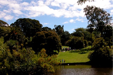 We had a lovely sunny day to explore Melbourne, so decided to spend as much time as possible out of doors. We discovered that there was a market in the morning, so headed off to see it. And guess where it was? That's right - the Royal Botanical Gardens! The gardens were lovely and covered a lot of land. They were well used by the locals, with weddings, birthday parties, and picnics stationed throughout the park. We walked through a fabulous Fern Gulley to reach the market. The ferns were incredible, with some of them as tall as palm trees. The light coming through the leaves made beautiful patterns and I couldn't help but take a few photos. It was a good market, with flowers, fruits and vegetables, and many crafts booths. I found a couple of pieces of pottery that I liked so into the carry bag they went. In speaking with the potter and his wife, we discovered that there was to be a free open-air concert in the park that night, featuring the Melbourne Symphony Orchestra and the music of some of the greatest Russian composers. Being a great fan of what Mike teasingly refers to as Russian Schmaltz, we decided to go.