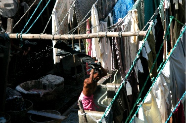And speaking of courage and persistence, our next stop illustrated how man will carry on doing whatever is required to survive. We stopped at Dhobi Ghat, one of the outdoor laundries, where men toil from sunrise to sunset cleaning clothes on stones for a few rupees per load. The area where they worked was like a shanty town of corrugated tin, a vast area of grey and black broken by the lines of sparkling white sheets and colorful clothing. It is backbreaking work in the hot sun, and I found it very dispiriting to look upon, but I could see why almost everyone in Bombay is so clean and neatly dressed, whatever their station in life.