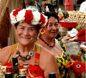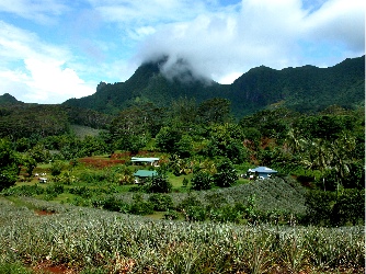 I can see why Gauguin arrived in French Polynesia and decided to stay. The islands are truly my idea of paradise. The water, which is at least a dozen shades of blue, is bordered by white and black sand beaches. The land is so lush and fertile that tropical flowers, such as hibiscus, frangiapani, Chinese Pagoda, and Bird of Paradise grow like weeds. Everywhere you look, you will see ginger plants with their bright red flowers; banana,rubber, mango, guava, and breadfruit trees, and coconut palms. Pineapple plantations stretch over the valleys that are ringed by green mountains with waterfalls cascading hundreds of feet down their sides. It is all indescribably beautiful.