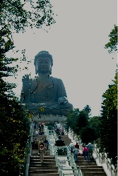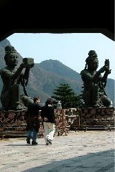 After a 20 minute ferry ride, we boarded a bus that would take us to Po Lin Monastery. This bus ride turned into a 45-minute ride along the coast of the island, through bamboo forests, over a mountain, around a reservoir, and half way up the side of another mountain. It was quite a ride. Sometimes, the driver drove so fast I thought he might have a death wish and some of the roads were were incredibly bumpy. The bus had air conditioning but I would have gladly traded it for springs! It was enough to bounce anyone's melons about.