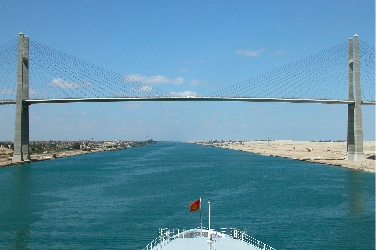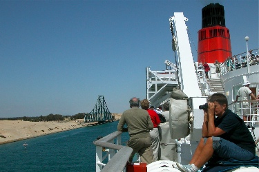 This entry is going to be short because I have to say that transiting the Suez Canal is not nearly as exciting as passing through the Panama Canal. For one thing, there are no locks. And although there is civilization and some farming along one side of the 117 mile canal, the other side is the Sinai Peninsula, which is basically desert.