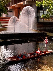 Christchurch is on the South Island of New Zealand and is not nearly as big a city as Auckland. It is so British that its river is called the Avon, it has an incredible private boy's school that looks like something out of the 19th century, and one can go punting on the river a la Cambridge. It also has an incredible Botanical Garden that reminds one of a small version of Kew Gardens. It's the kind of place where you imagine that everyone must sit around in lawn chairs nibbling on cucumber sandwiches. All veddy, veddy British, you know.