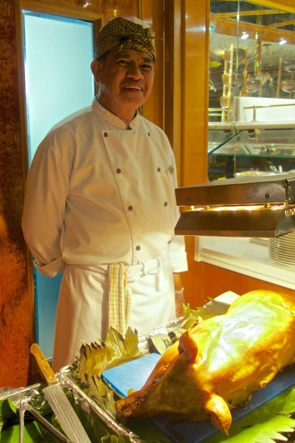 This evening, the crew treated us to a wonderful Ring of Fire dinner, which included an amazing array of Indonesian dishes including a whole roast suckling pig!