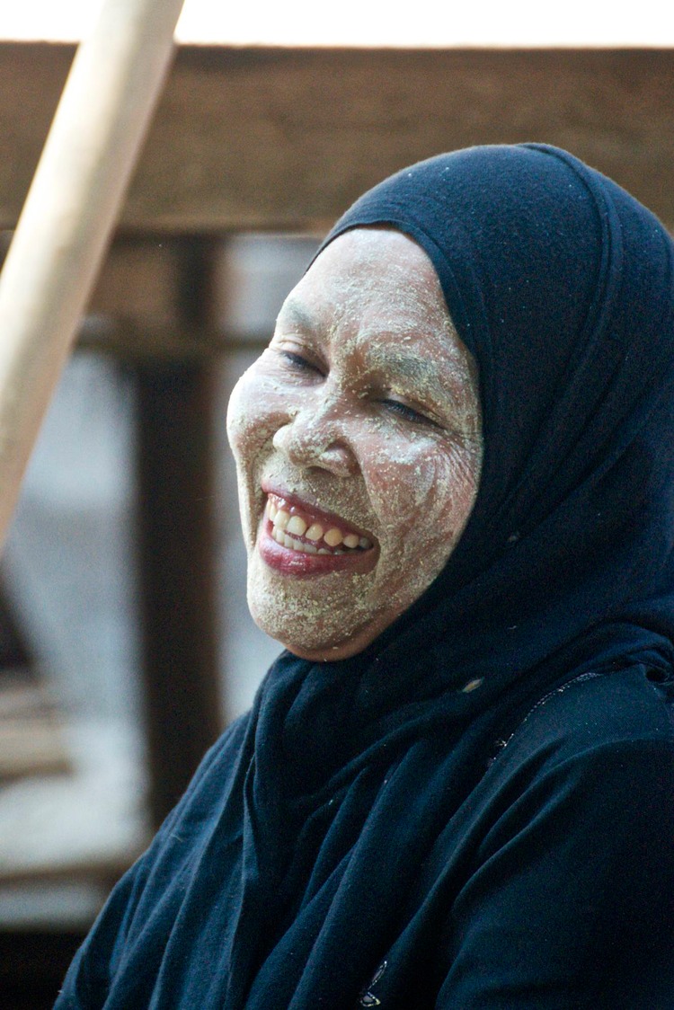 This was a very interesting day! We had the opportunity to visit a village where the villagers were very friendly and welcoming and put on a cultural display for us. I enjoyed wandering through the village and seeing how the people there lived. We were shown how they wove the cloth for the clothes they wore, how they pounded the rice with poles to break it down and then sifted it, and how they dried their meat in baskets hanging from their porches. In the photo below, the woman is wearing a facial paste made from rice.