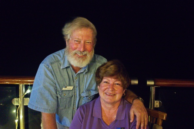Dinner was a Welcome to Australia BBQ on the back deck where we were served grilled lobster tails, lamp chops, barramundi, chicken - the list goes on and on. Here is a picture of me and Tom Richie, with the wind at the side of the deck blowing our hair backwards. See if you can count the freckles I now have on my face!