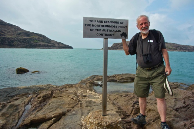 In the afternoon, we stopped at the most northerly point of mainland Australia, Cape York. Here we were offered the chance to go hiking. The best thing about this stop was that one could have their picture taken at a marker proclaiming this fact. Mike had just hiked through a mangrove swamp, following naturalist Tom Ritchie on a “short cut”, so he is not looking as dapper as he often does. I don’t know if that is a smile or a grimace of pain on Mike’s face, but he is just glad to be out of the swamp!