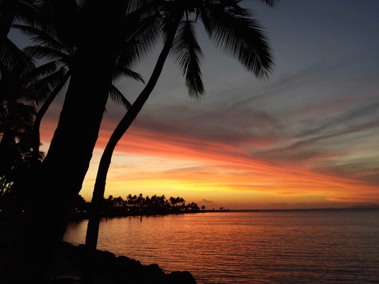 For our last night in Fiji, we decided to eat at the fancy restaurant by the beach and we had a prime table from which to watch the spectacular sunset. After a really delicious dinner, the entire staff of the restaurant, including the chef, came over to our table to sing us a farewell song, wishing us a safe journey home. Their voices were quite lovely and it was a fantastic wait to end what has truly been a fantastic trip!
